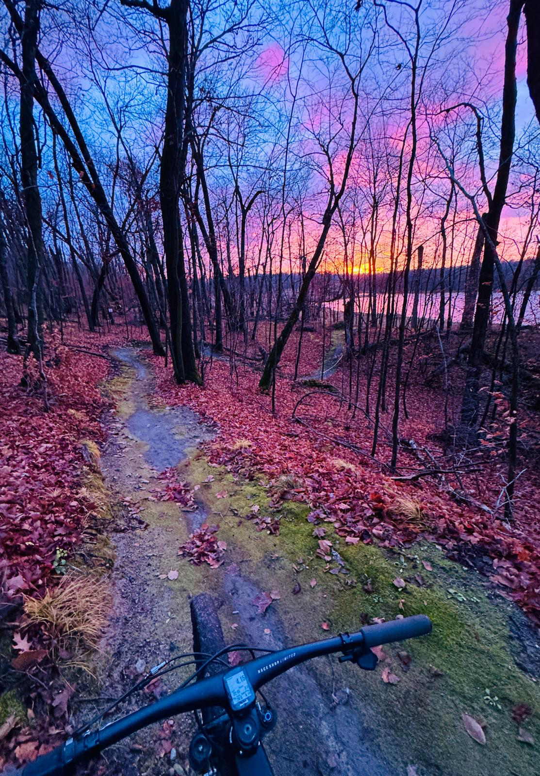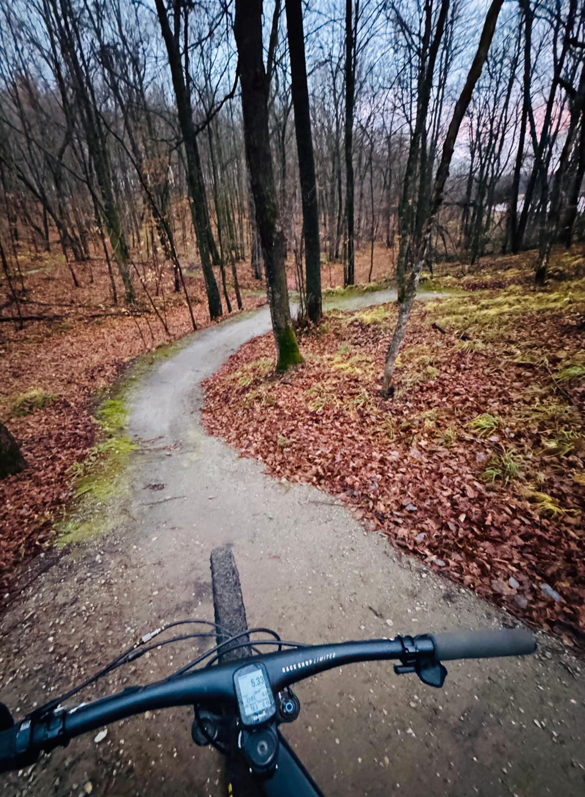 The entire 25 mile LagChilada course has been blown out the past 10 days. A few leaves blowing in after blowing last week but overall all nice Fall riding as most of the leaves have dropped from the trees. With fresh blown trail, great sight lines etc. we are in the “sweet spot” of Fall riding. Touch up clearing planned later in the week for our final weekend of riding.