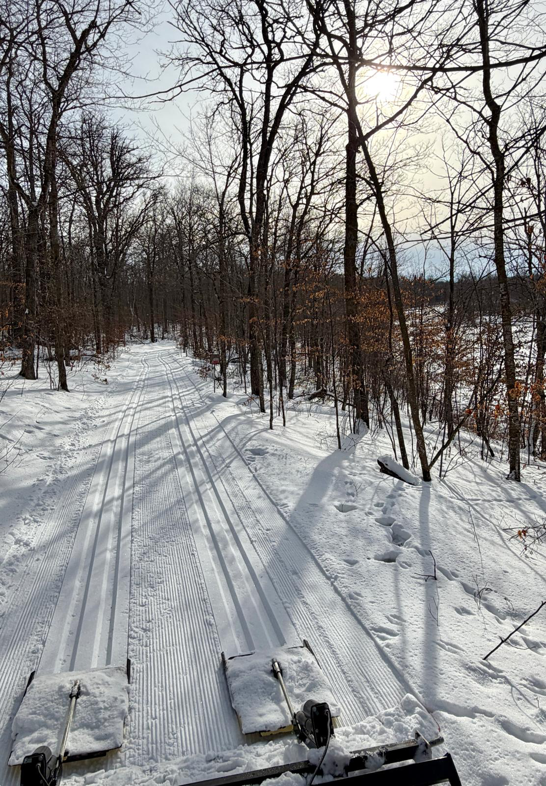 Trails are open. A glorious day to ski! Sunshine on Sap Run for a morning ski didn’t get much better. Despite a mild day on Wednesday, the trails and snow are holding out great. High temperature was 36 but only for a hour or so before cooling back down. Today we reached 32 for a hour or so but started cooling back down around 2pm. We had an inch or so of rime snow fall from the trees yesterday that is grooming in nicely to the existing base making for very good to excellent conditions. Thursday grooming on all the skate trails and resetting of tracks on Mother Hen, Mother North Star, JibFly, Twin Lakes, Wavy Gravy and Island Lake. Friday track grooming planned on Rootin Tootin, Roy’s Run and a reset of the track on North Loup to complete grooming of the entire open groomed trail system.