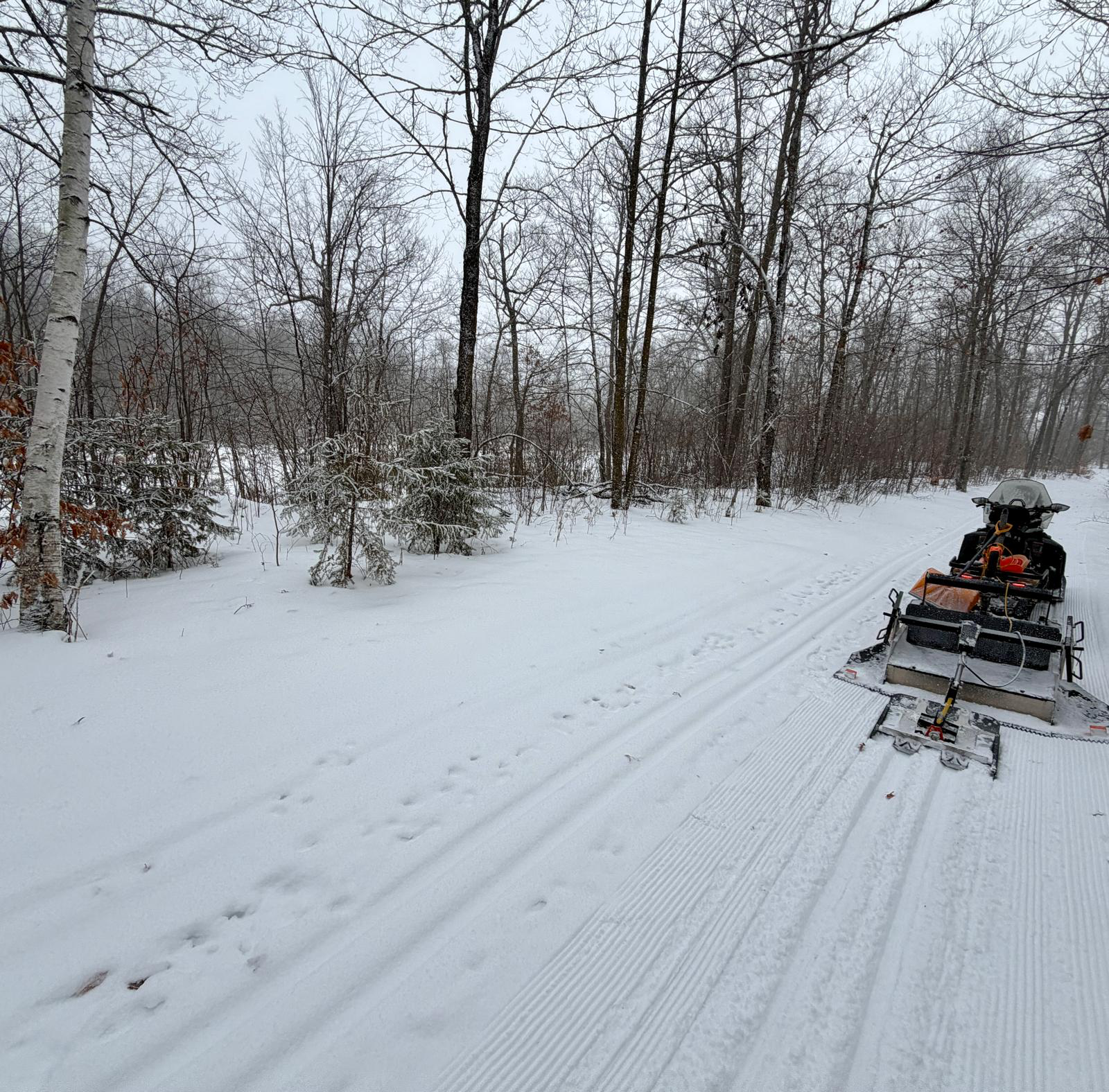 We had a great Autumn of Fall grooming clearing leaves and debris off the trails and the new snow is packing in well with the clean deck before the snow.