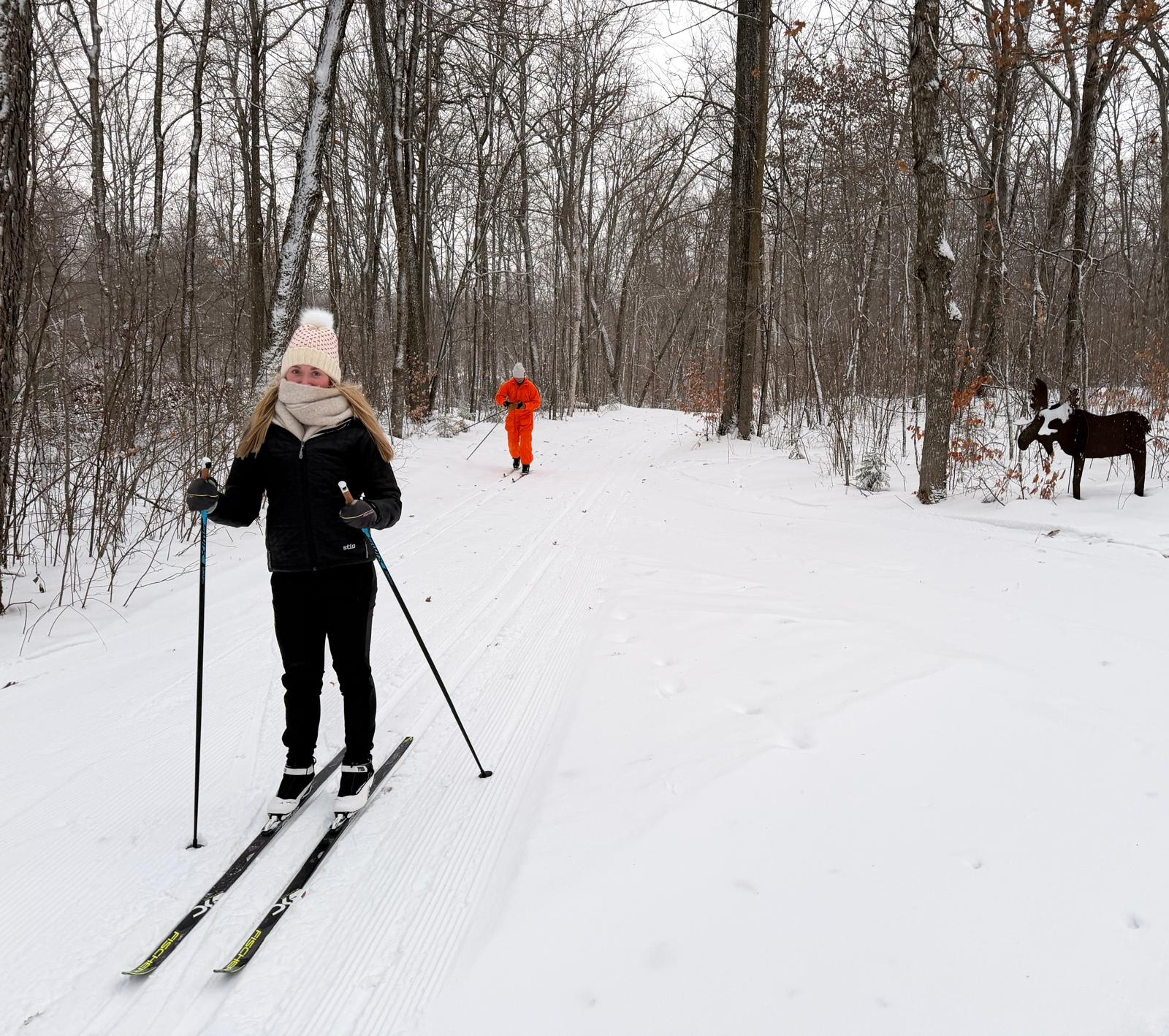 Skating on Skaters Waltz, the extension loops, North Loup, Single Green, Kristin’s Kutoff and Eira Bikwadinaa Hill. All other trails are tracked for classic skiing. (Please no skating on classic trails) Sukkerbusk is a great starter trail for classic which feeds the outer trails and crosses most of the inner trails providing a good “lay of the land”.