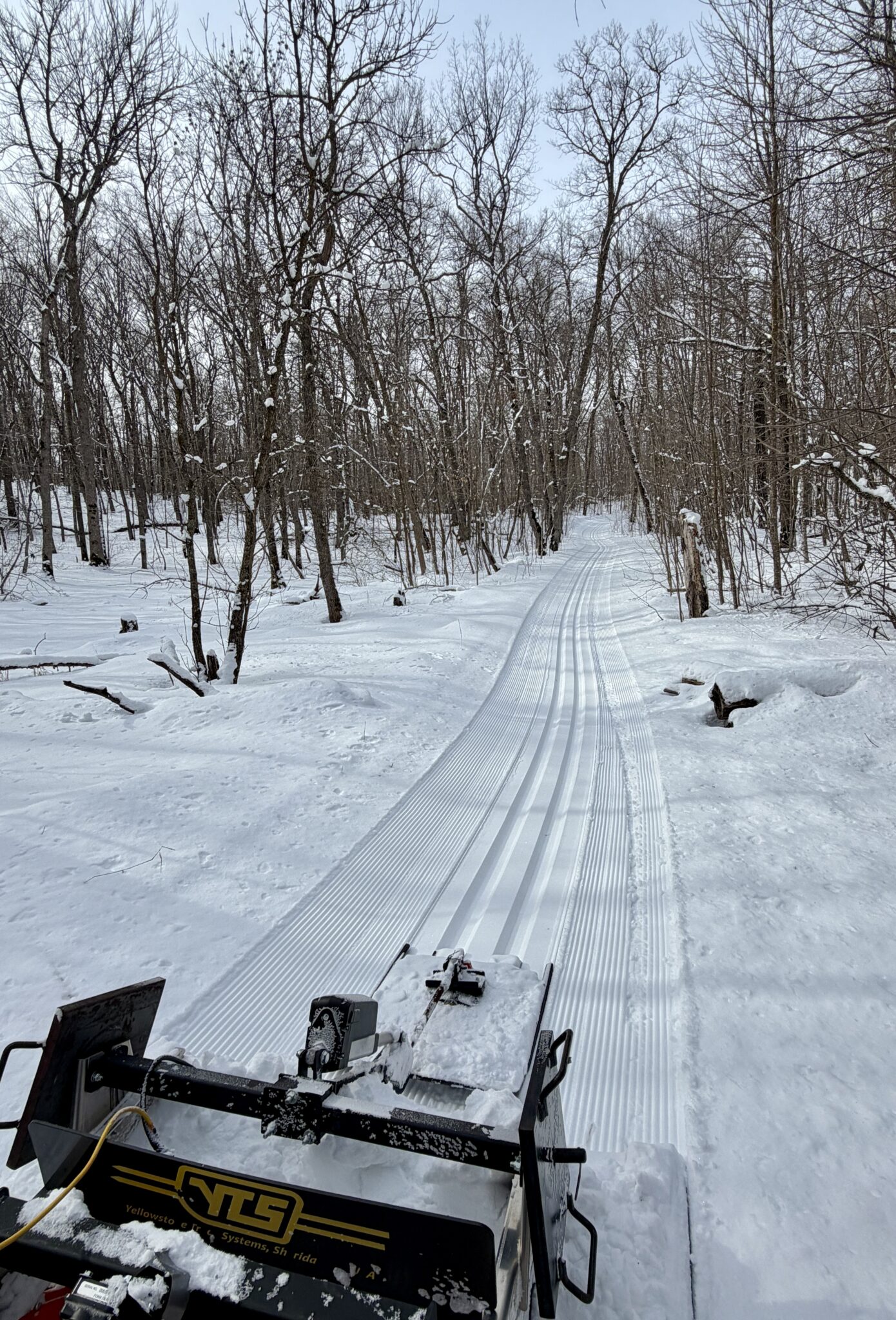 Trails are open for skiing. Nice to see everyone out on Sunday. Wind kicked in the afternoon but still was awesome day of late season skiing. Monday grooming planned today on Twin Lakes setting a singletrack and touch up grooming on select trails that have been groomed since the new snow on the weekend. Trails open and groomed include Sap Run, Mother Hen, Sukkerbusk, JibFly, Rootin Tootin and Roy’s Run for classic. Skaters Waltz 4km loop open for skating. Great late season conditions. Get out today or tomorrow for the best skiing before warm weather returns! Grooming planned until Wednesday.
