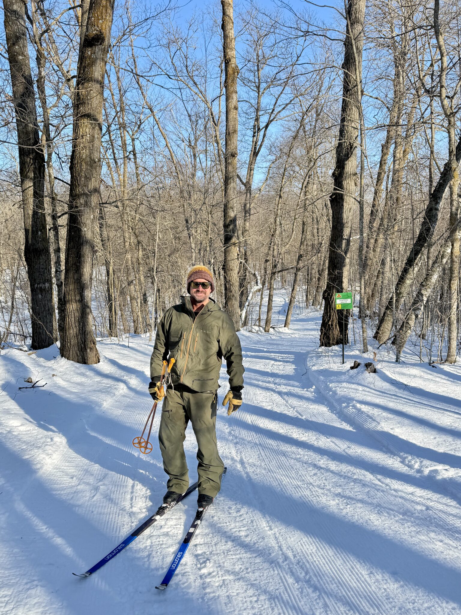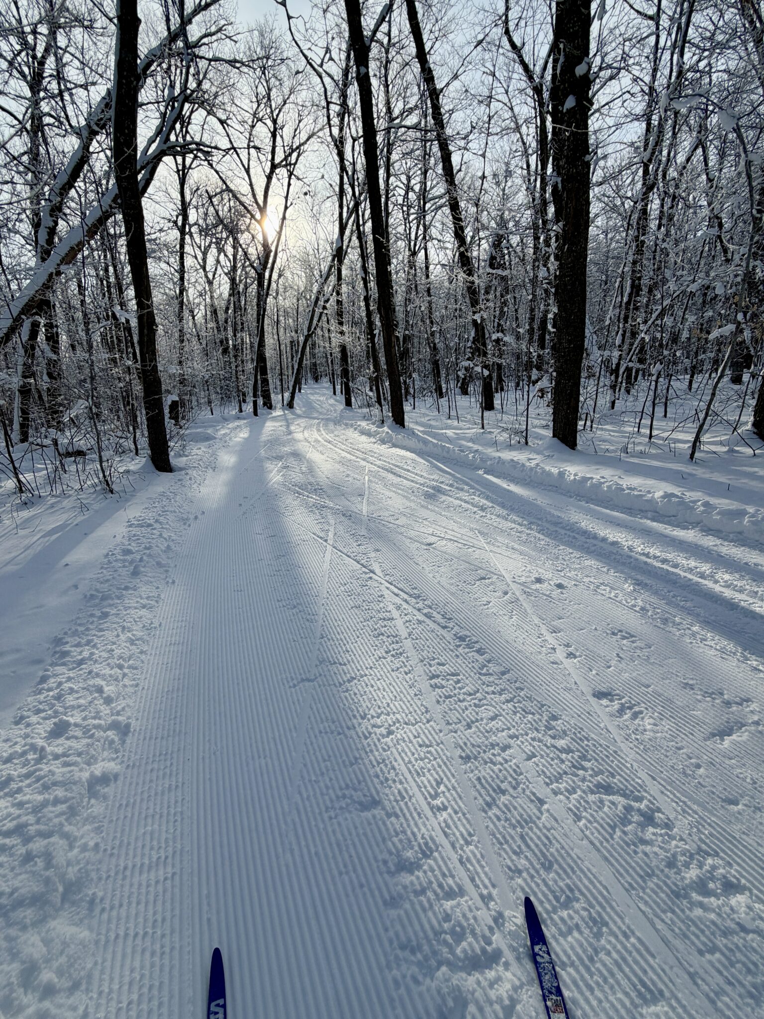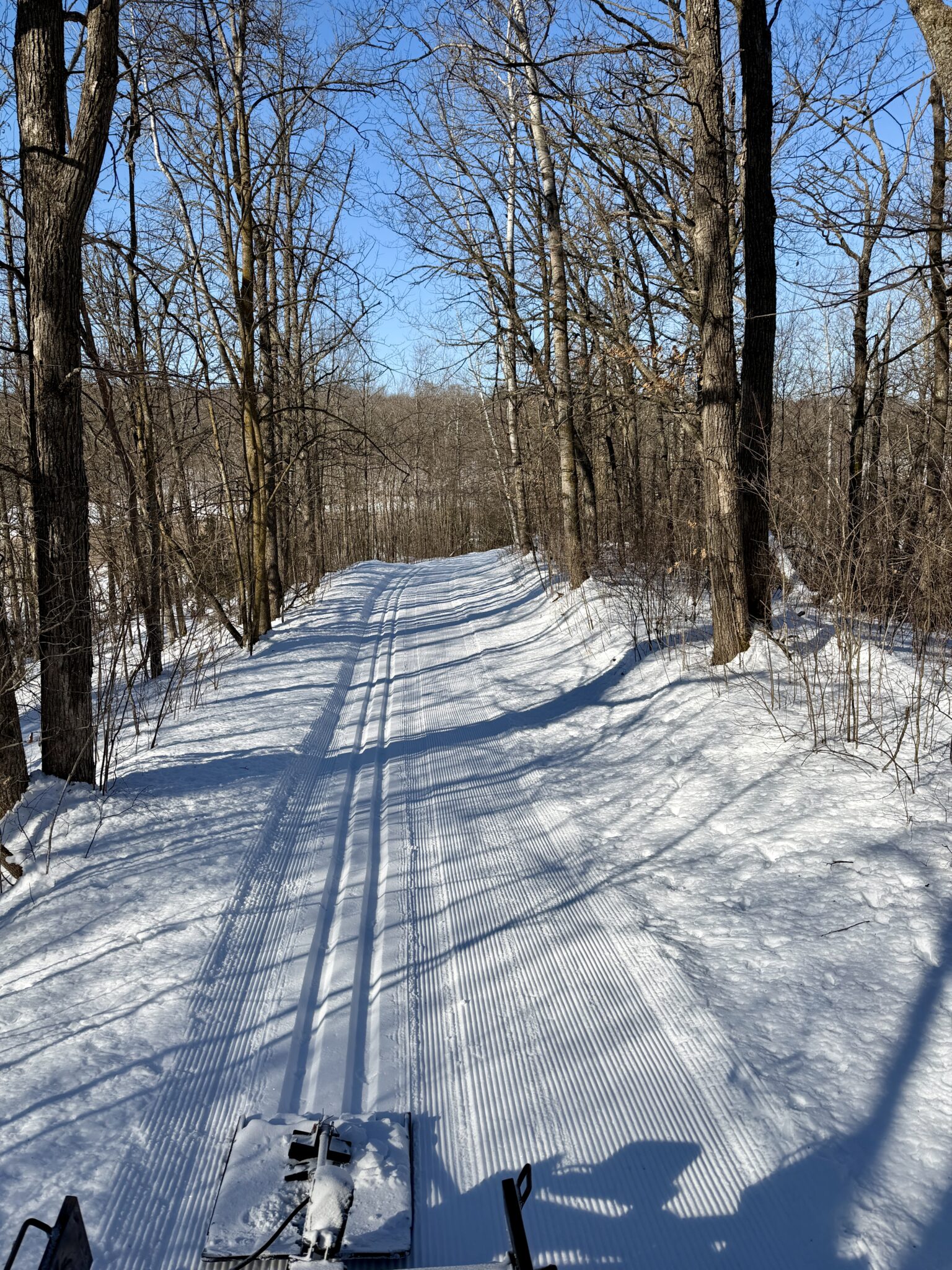 Trails are open! Freezing down hard overnight which allowed us to groom this morning. Skate loop renovated and combed and tracks renovated and reset on Sap Run and Sukkerbusk. A bit chunky but still decent skiing. Also fresh track set on Twin Lakes and JibFly which groomed out really nice. With a melty day Sunday and a refreeze, tracks are a bit faster but grooming pulling up drier snow. Looks to be below freezing all day today which should make all day skiing possible. Watch for sticky areas in the afternoon if sun pops out.