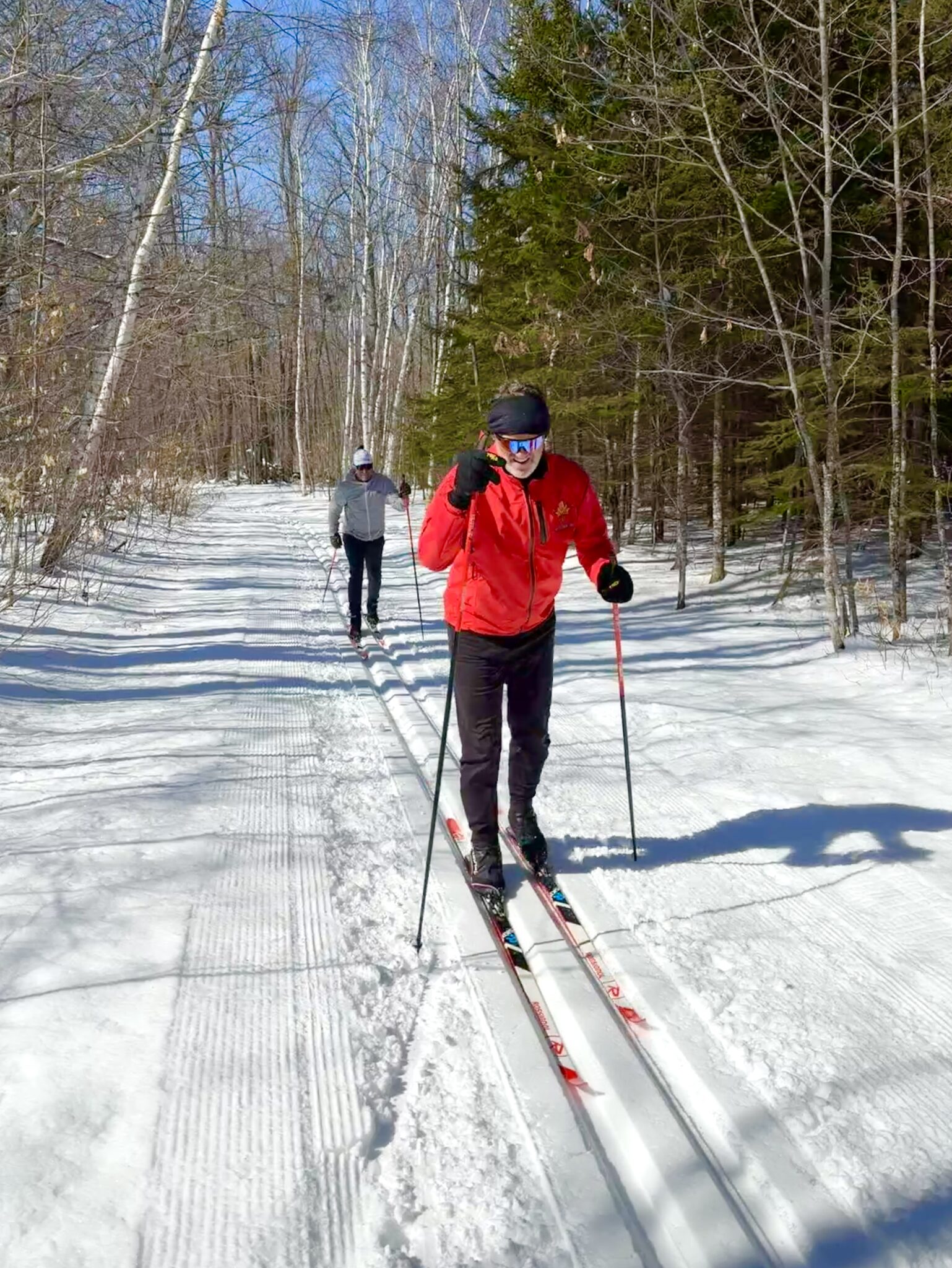 Trails are open! A crisp and cool morning with early morning low checking in at 2 degrees! Sunshine and light wind. A great day to ski! Looks to warm up to the mid 30’s today. Should be nice skiing most of the day, especially with cloud cover. Cold temperatures yesterday allowed grooming in the morning and afternoon/evening. Tracks renovated and reset on Sap Run and Sukkerbusk. Also fresh track set on Twin Lakes and JibFly. A 3km loop is groomed for skating starting out of the soccer field and using much of Skaters Waltz. No tracks set on this loop but open for no track classic skiing.