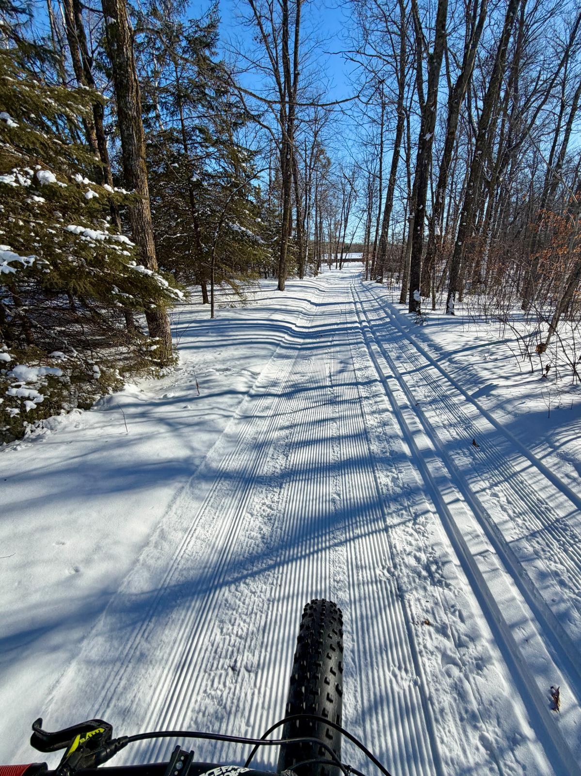 We have also have a loop on Little Sugarbush Lake “Lumi’s Loop” with a skate lane and track on each side. This is a fun 1.2km loop that makes for a fun ski at sunrise and sunset and under the full moon! Groomed 1/29.