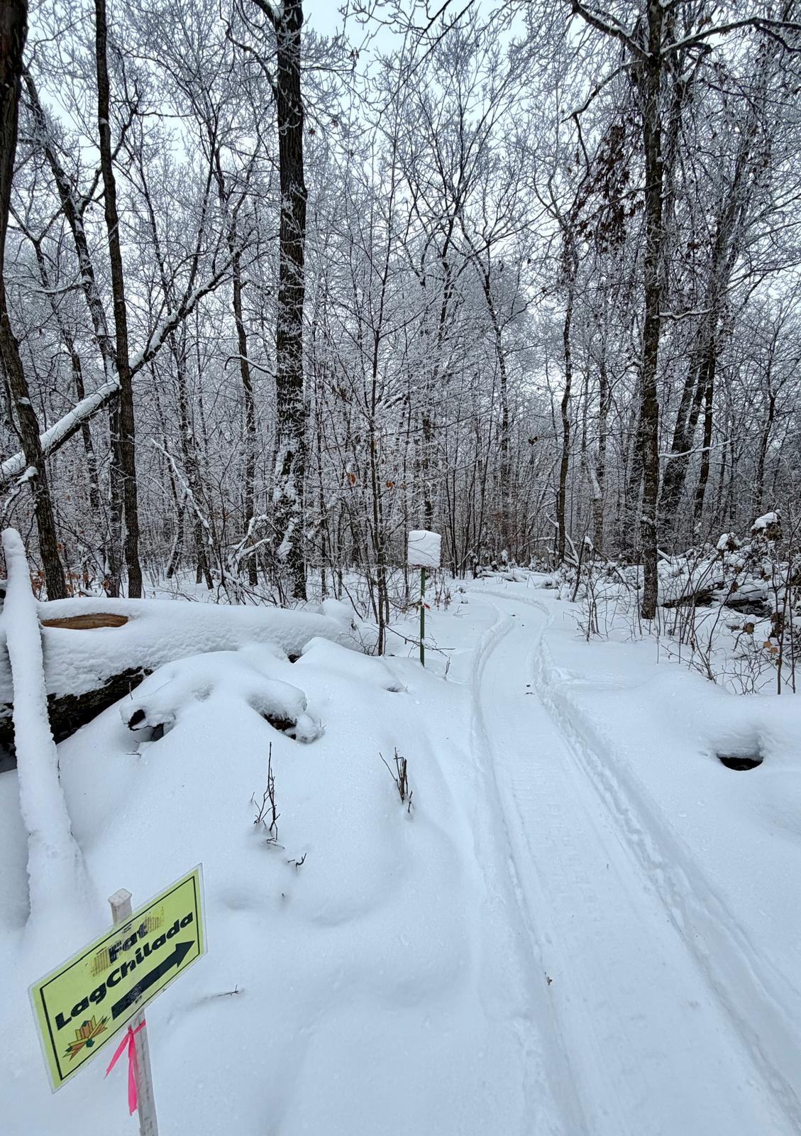 The first half of Twin Lakes has a few soft spots and the singletrack is a bit tighter. We plan to groom later today when it warms up to help firm up the edges when it cools back down again. (It is important to run lower tire pressure and keep the bike centered on the trail! On the corners, check the speed and make turn in the middle. Going wide will result in “augering”.) This week we have been working on the Bullhead Bootleg loop to complete the full LagChilada loop and should have the entire 25km FatLagChilada course open and regroomed by the weekend.