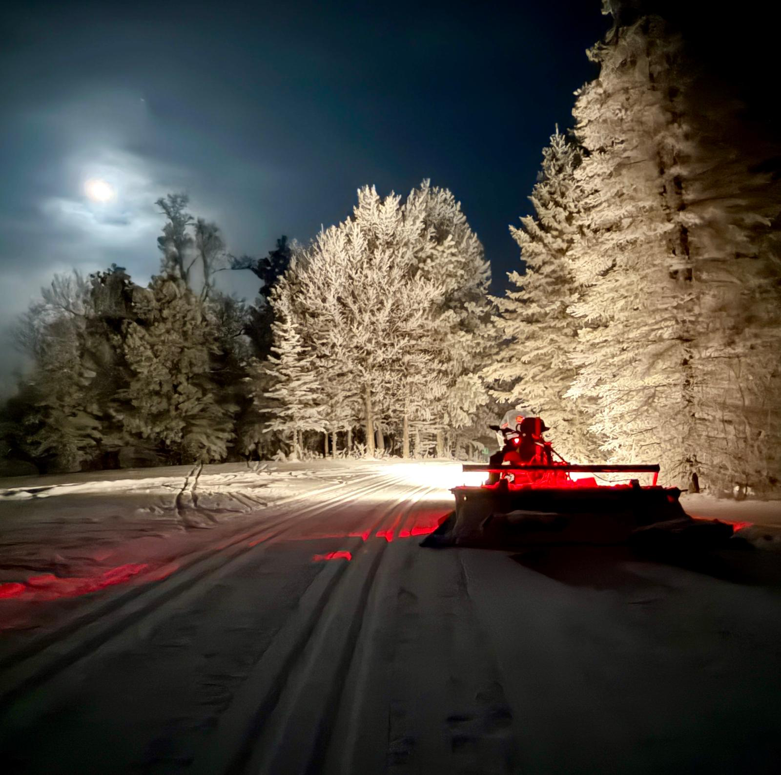 We have also have a loop on Little Sugarbush Lake “Lumi’s Loop” with a skate lane and track on each side. This is a fun 1.2km loop that makes for a fun ski at sunrise, sunset and especially at night with the full moon this past week. The lake has over a foot of ice.