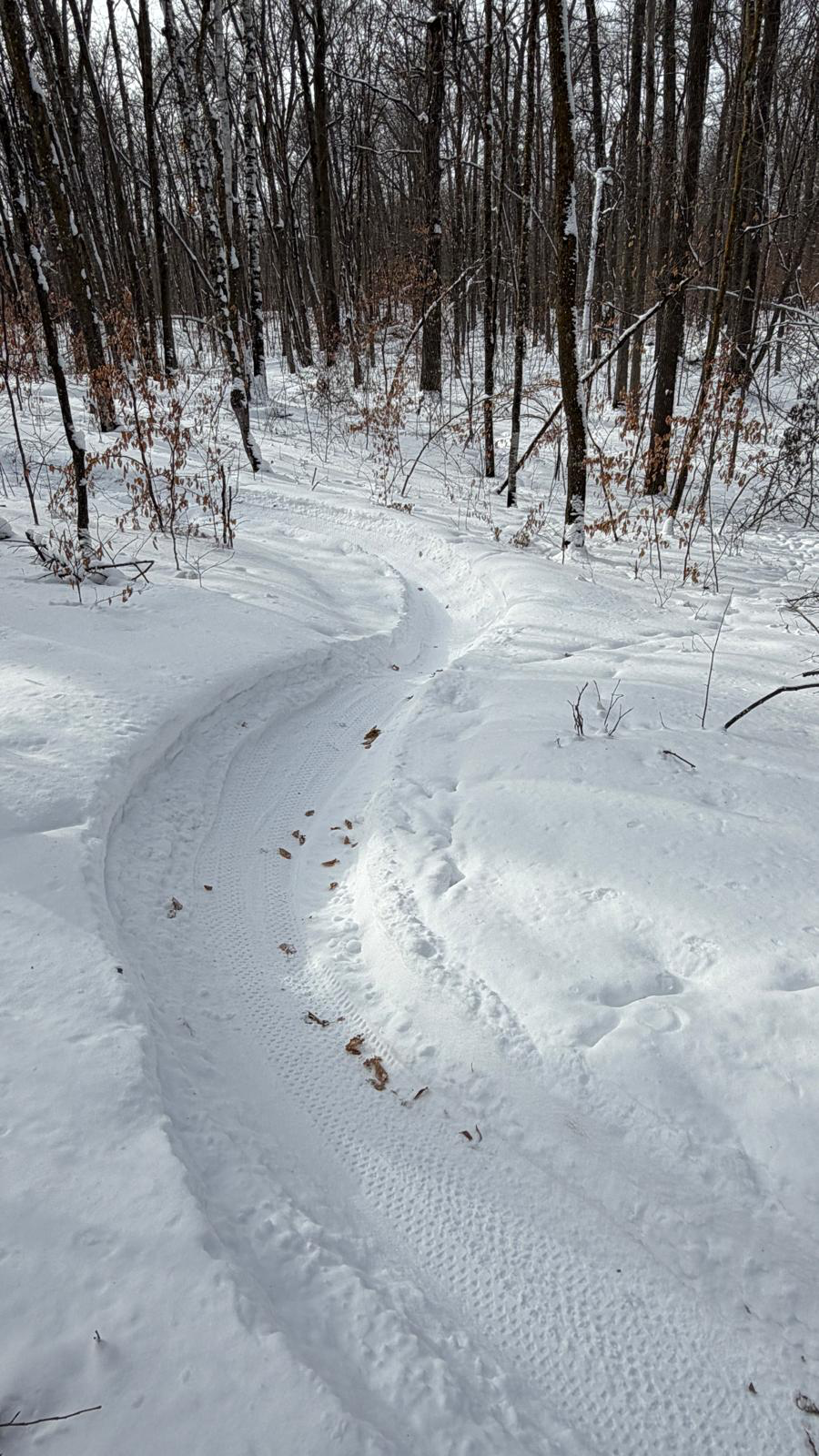Bjorps singletrack, January 24th, 2026.Groomed fat bike singletrack, January 24th, 2026.Bridge section open and groomed, January 23rd, 2026.“Bjorp’s” singletrack part of open and groomed singletrack, January 22nd, 2026.Connector to Bjorp’s from the driveway, January 22nd, 2026.Grooming on the singletrack, January 21st, 2026.Fresh groomed singletrack at end of Bridge section, January 21s,t 2026.Bullhead Bootleg singletrack buried in snow, January 20th, 2026.
