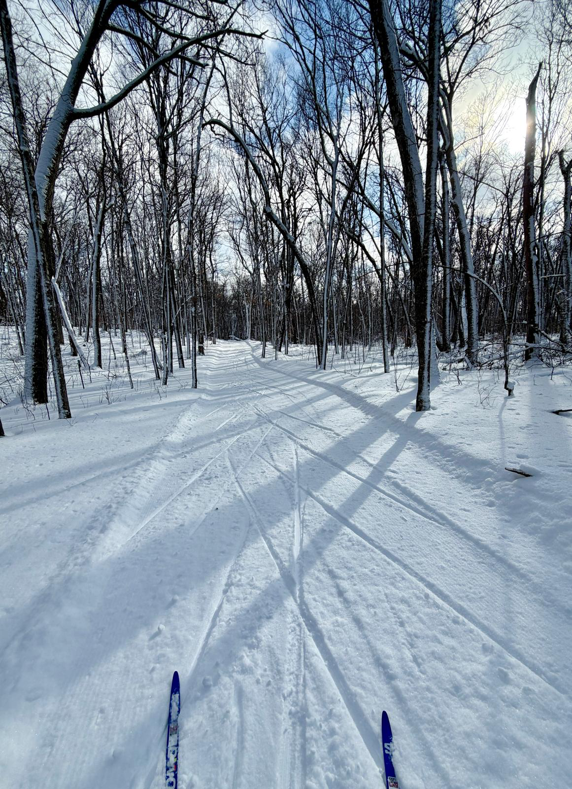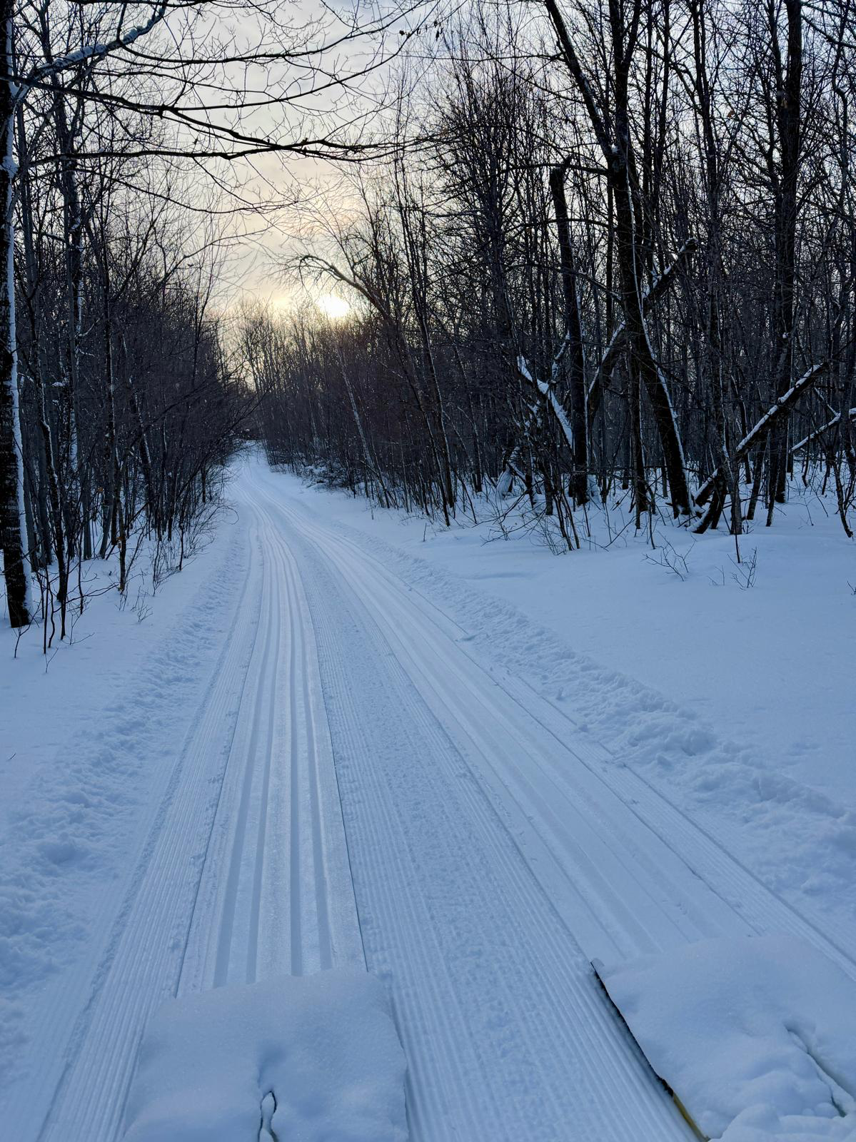 We have also have a loop on Little Sugarbush Lake “Lumi’s Loop” with a skate lane and track on each side. This is a fun 1.2km loop that makes for a fun ski at sunrise and sunset. We plan to groom today 1/20.