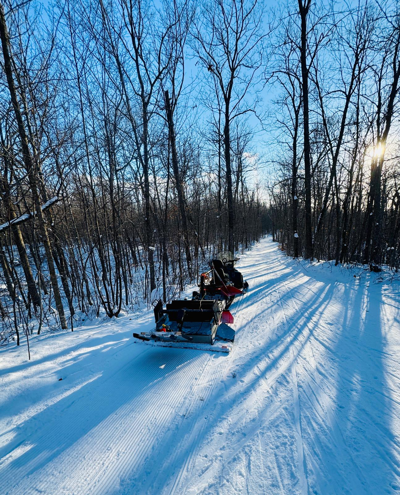 We have been grooming daily this week, working on all the trails and filling in thin areas. Mother North Star, Rootin Tootin, Twin Lakes, North Loup and Skaters extension and JibFly have been roll combed. Tuesday we packed out Roy’s Run, Wavy Gravy and Island Lake trails just with the snowmobile. Next snowfall we will comb out and set a track if enough new snow on the above singletrack trails.