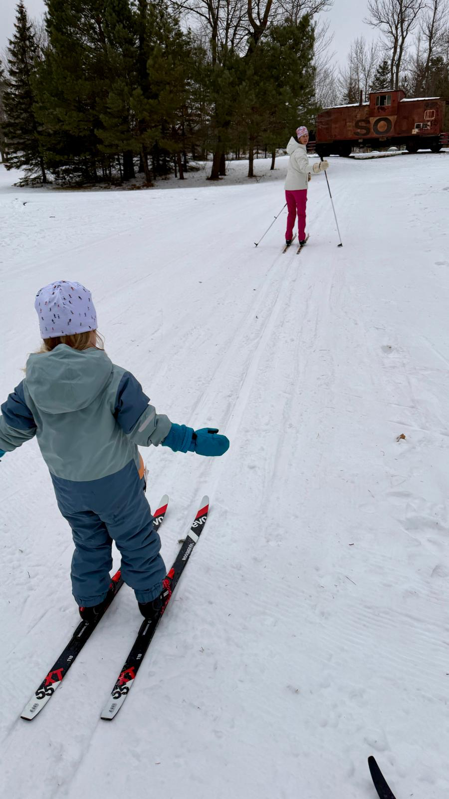 Skating on Skaters Waltz, the extension loops, North Loup, Single Green, Kristin’s Kutoff and Eira Bikwadinaa Hill. All other trails are tracked for classic skiing. (Please no skating on classic trails) Sukkerbusk is a great starter trail for classic which feeds the outer trails and crosses most of the inner trails providing a good “lay of the land”.