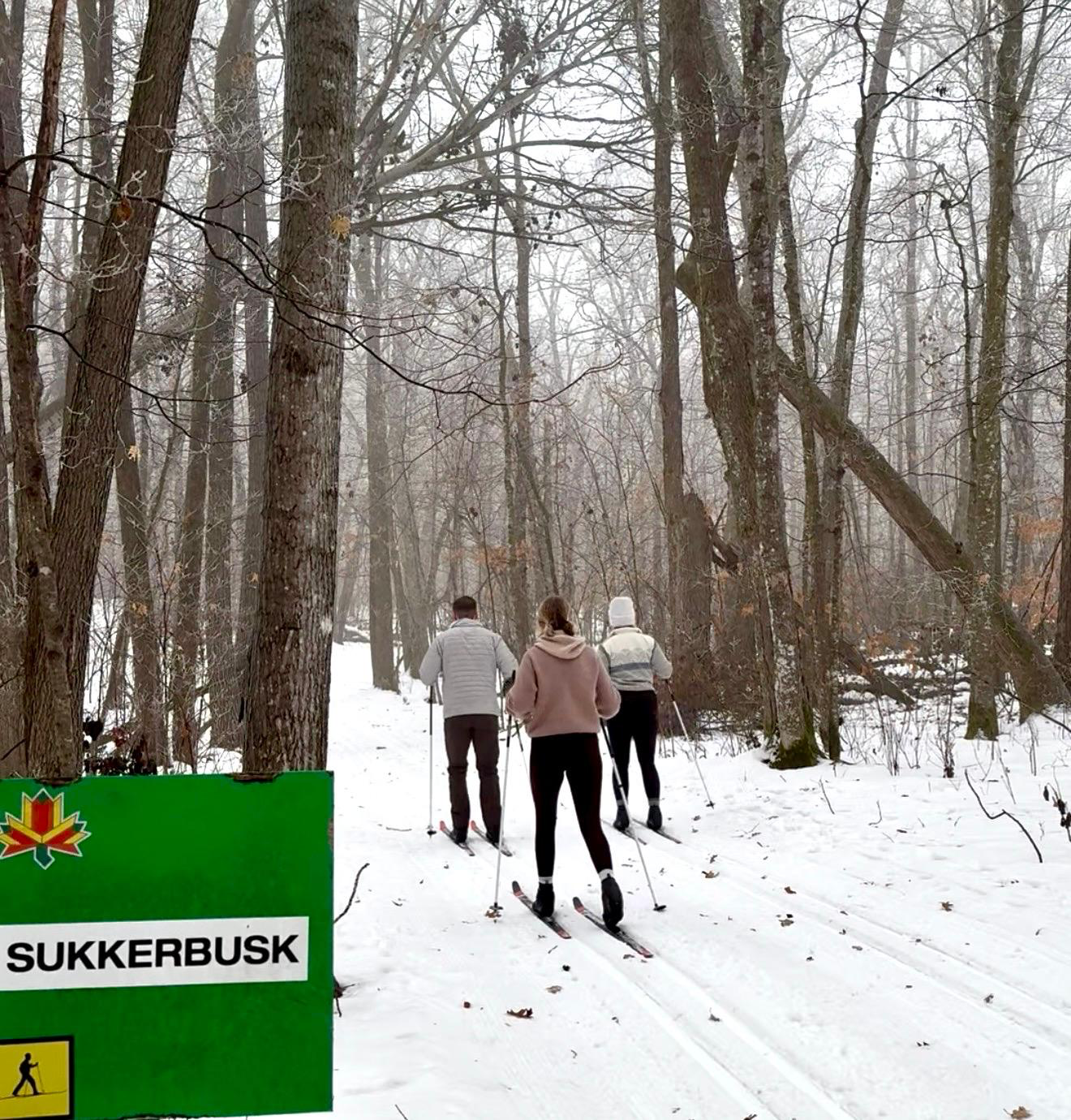 Skating on Skaters Waltz, the extension loops, North Loup, Single Green, Kristin’s Kutoff and Eira Bikwadinaa Hill. All other trails are tracked for classic skiing. (Please no skating on classic trails) Sukkerbusk is a great starter trail for classic which feeds the outer trails and crosses most of the inner trails providing a good “lay of the land”.