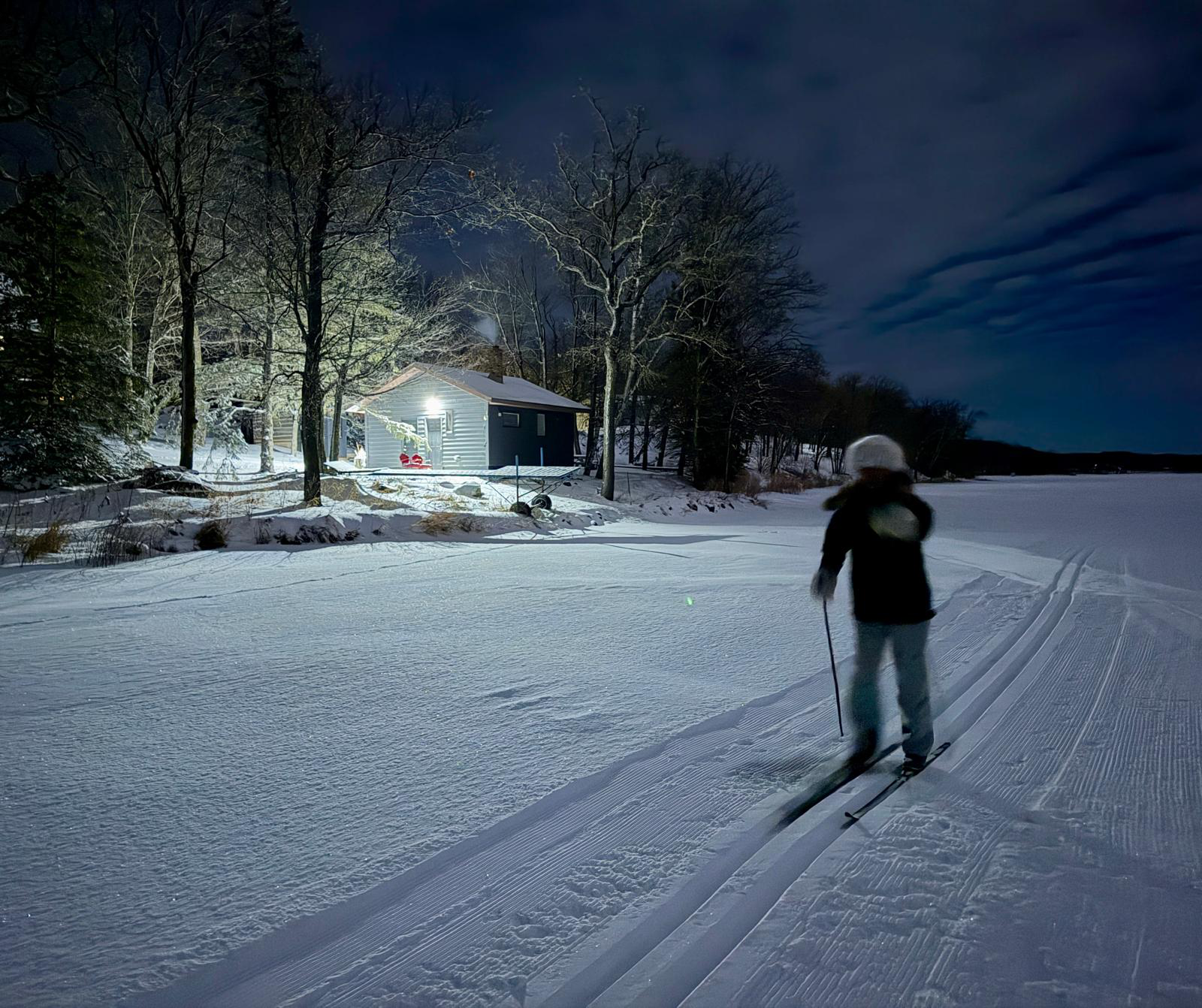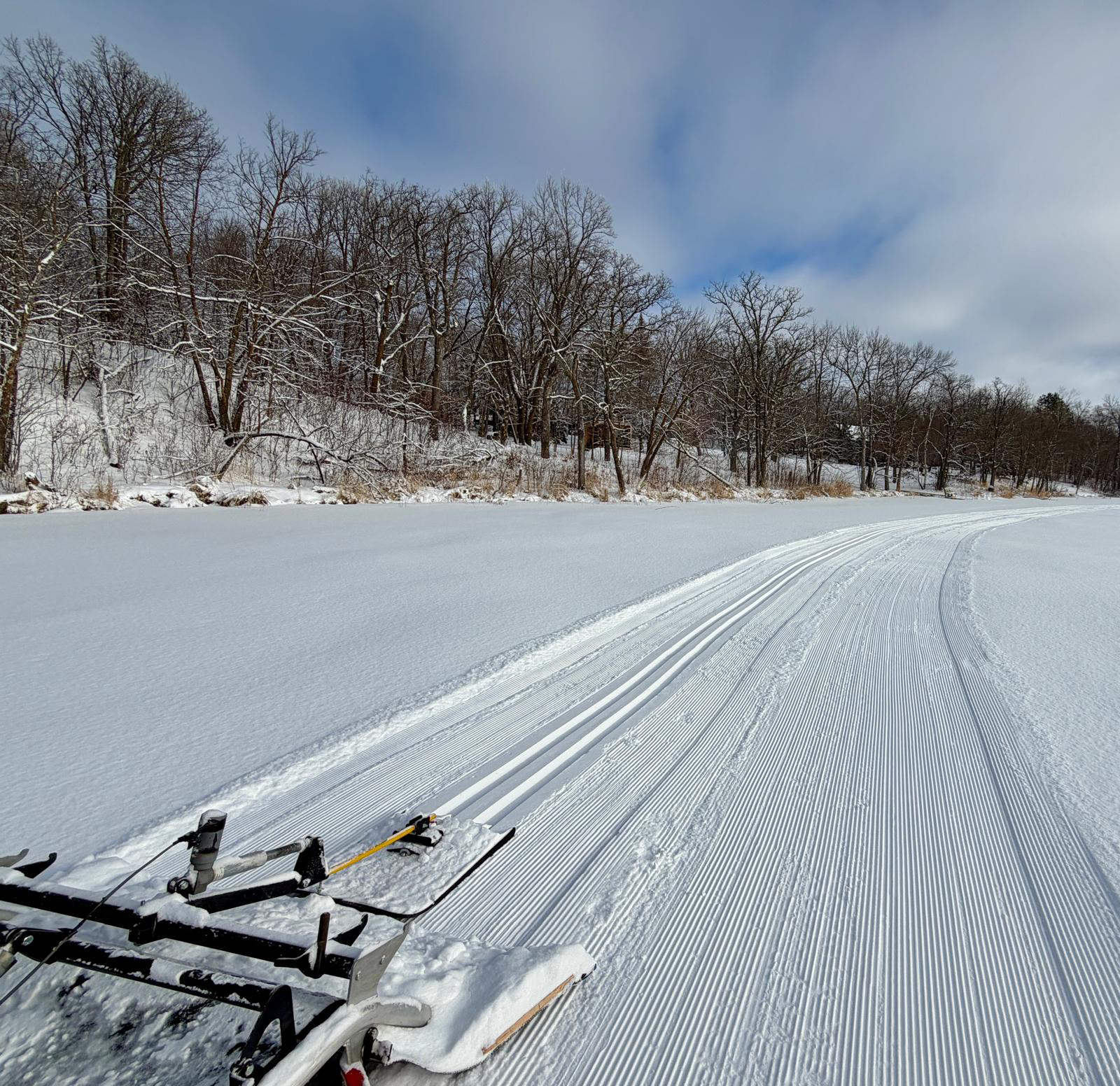 Trails are open. Happy New Year! We are open today and ski rentals are available. Excellent conditions. A super day of skiing for the first day of 2026! Another dusting of snow overnight. We are in a gentle snowy cycle resulting in really nice skiing! Snowfall the past three days resulting in 5-6″ total accumulation. We will be grooming on much of the trail system today. We groomed the entire trail system including “Lumi’s Loop” which is a 1.2km loop on the lake with a skate lane and track set yesterday. It’s been awesome seeing so many people out on the trails this holiday season and we deeply appreciate the support!