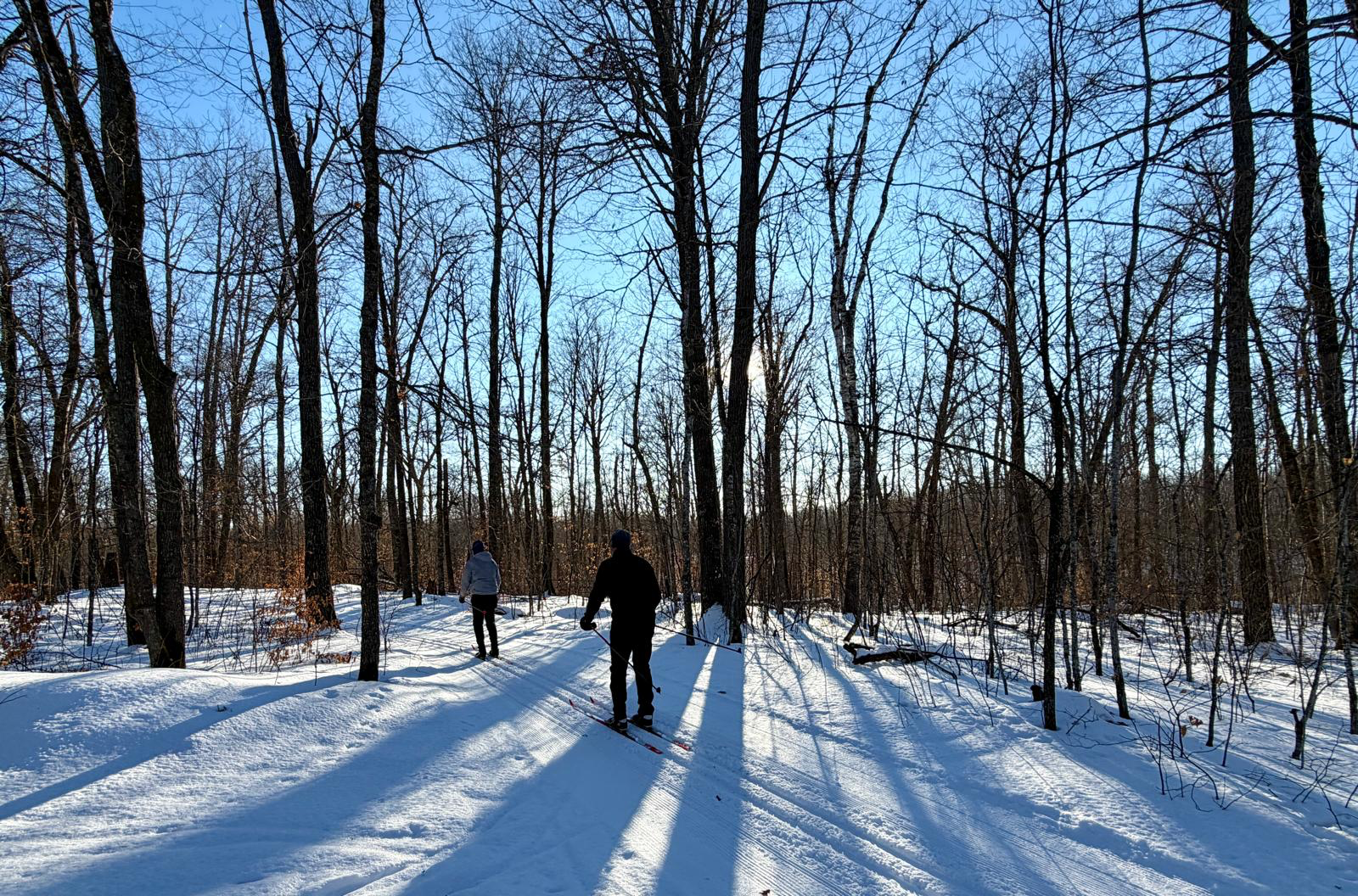 Skating on Skaters Waltz, the extension loops, North Loup, Single Green, Kristin’s Kutoff and Eira Bikwadinaa Hill. All other trails are tracked for classic skiing. (Please no skating on classic trails) Sukkerbusk is a great starter trail for classic which feeds the outer trails and crosses most of the inner trails providing a good “lay of the land”.