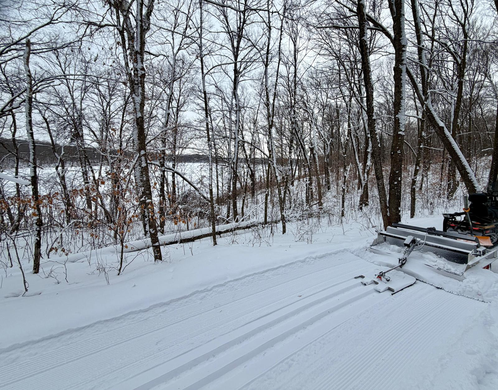 We have also have a loop on Little Sugarbush Lake “Lumi’s Loop” with a skate lane and track on each side. This is a fun 1.2km loop that makes for a fun ski at sunrise and sunset. We plan to groom today 1/20.