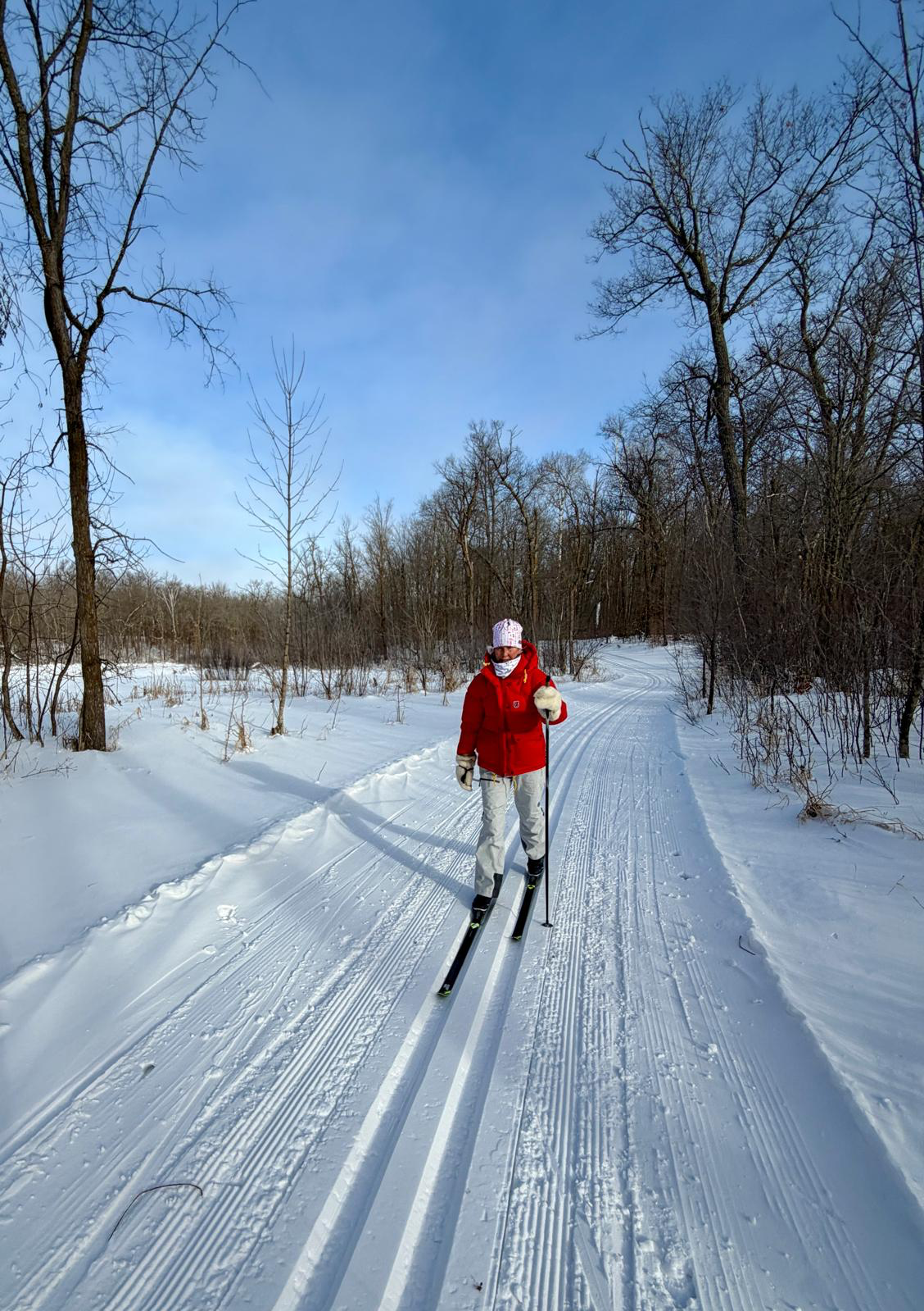 Skating on Skaters Waltz, the extension loops, North Loup, Single Green, Kristin’s Kutoff and Eira Bikwadinaa Hill. All other trails are tracked for classic skiing. (Please no skating on classic trails) Sukkerbusk is a great starter trail for classic which feeds the outer trails and crosses most of the inner trails providing a good “lay of the land”.
