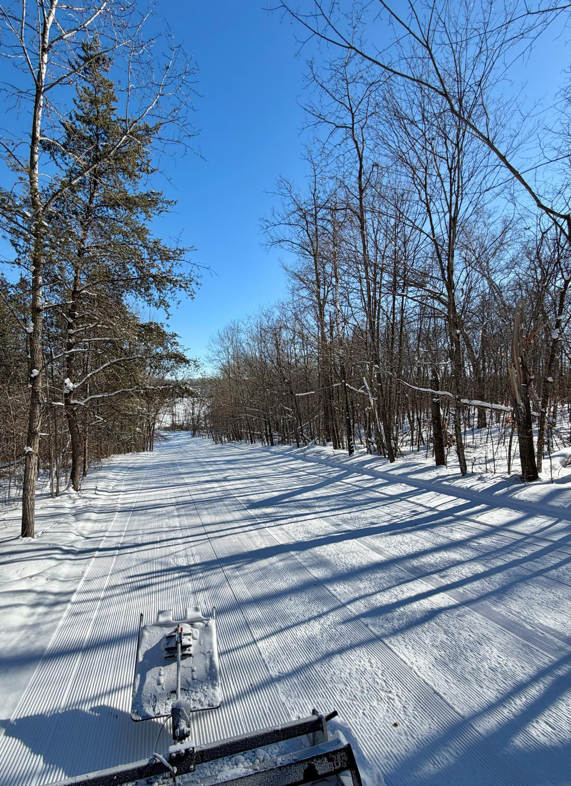Thursday grooming on Bullhead Bootleg Lake loop, Loon Return, Wavy Gravy, Twin Lakes and Island Lake trails. Skate grooming on Skaters Waltz, Eira Bikwadinaa hill, Kristin’s Kutoff, and Single Green. Today we plan to reset track on Roy’s Run, North Loup and comb out the skate lane on North Loup and extension loop of Skaters Waltz. All other trails groomed Tuesday and Wednesday.