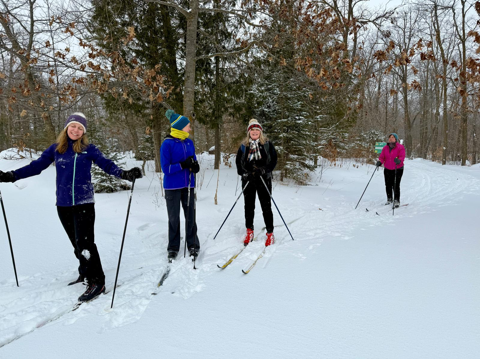Trails are open. A snowy start to February with 4″ or so of new snow past 24 hours. First three inches very dense and last inch or so very fluffy. Still high humidity but the snow has a dry loose feel. That’s the beauty of winter and snow…always different! We will be out grooming today, focusing on the course for Tuesday’s Section races and try to groom out some of the outer trails. The fresh snow and moderating temps making for very nice skiing. We won’t be overly aggressive on the grooming this week, but instead enjoying the fresh powder while we can!