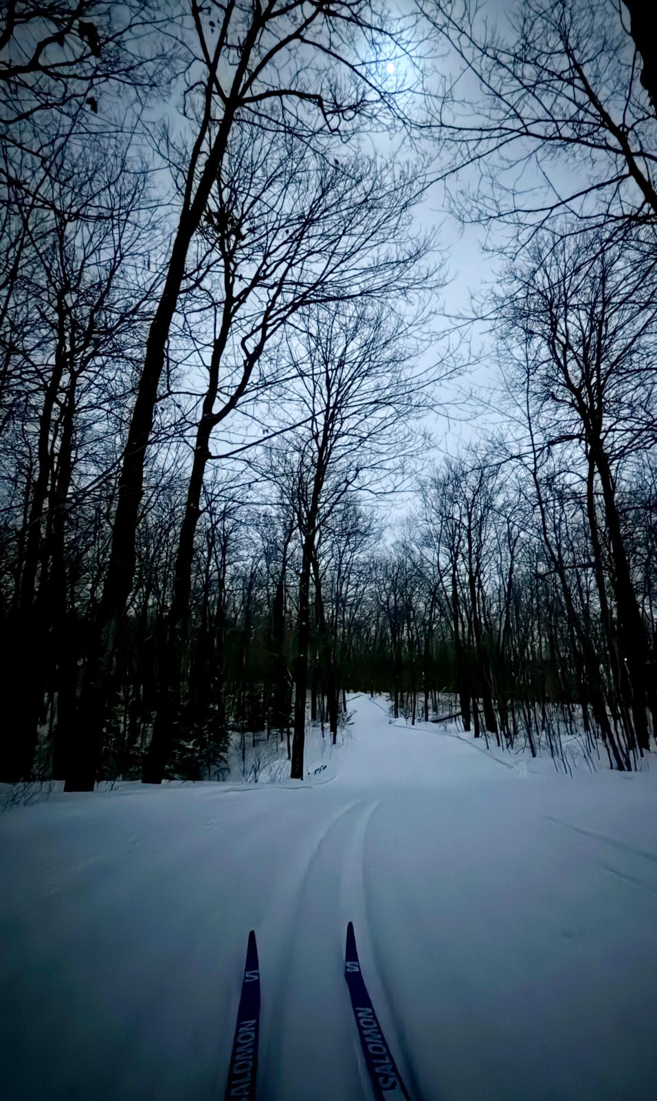 We have also have a loop on Little Sugarbush Lake “Lumi’s Loop” with a skate lane and track on each side. This is a fun 1.2km loop that makes for a fun ski at sunrise and sunset and under the full moon! Groomed 1/29.