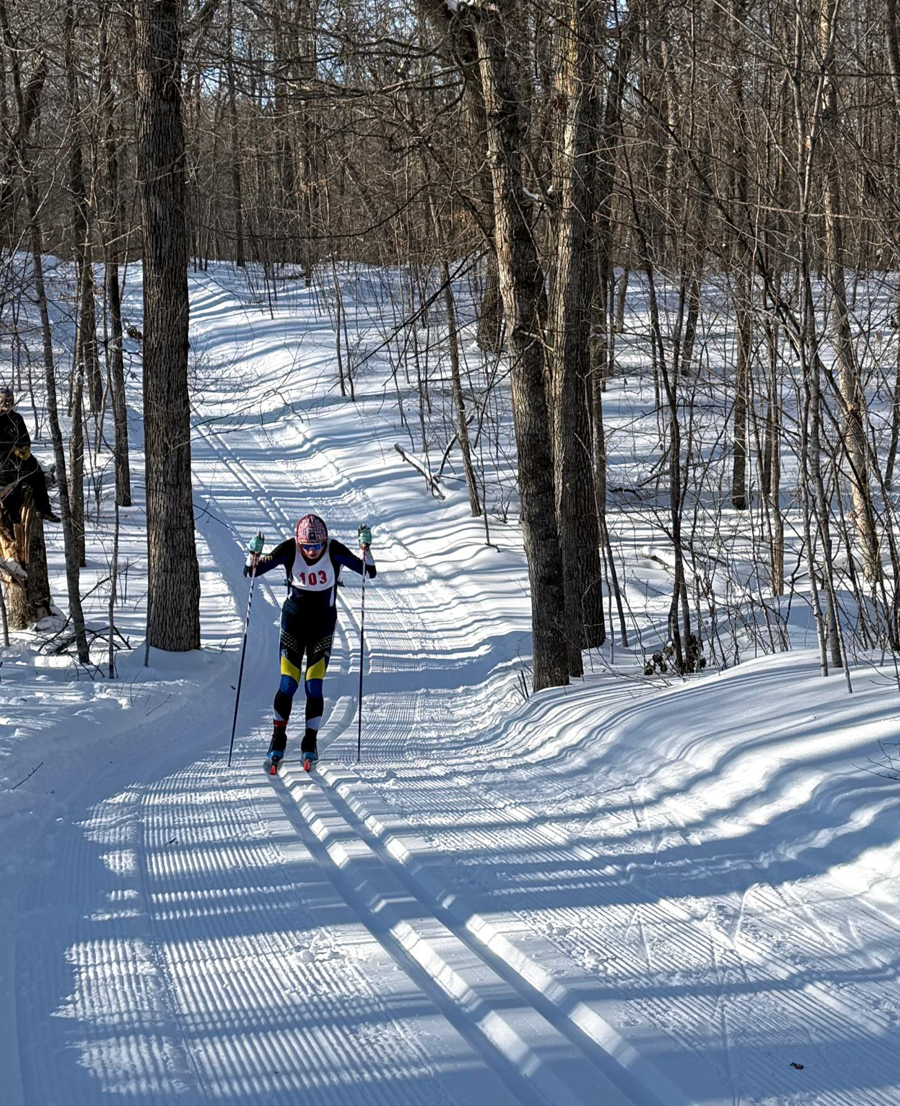 43″ of snow so far this season. We have been grooming daily on the entire trail system since mid November, only missing a few days.