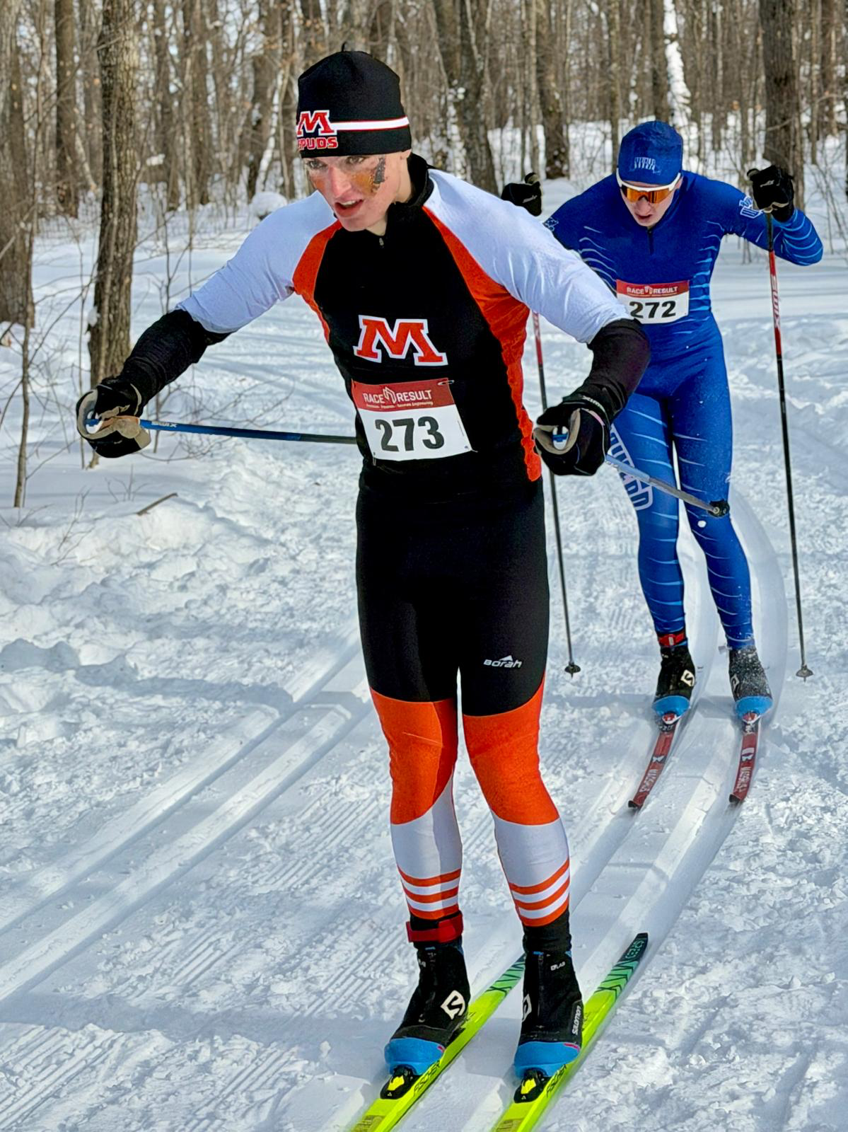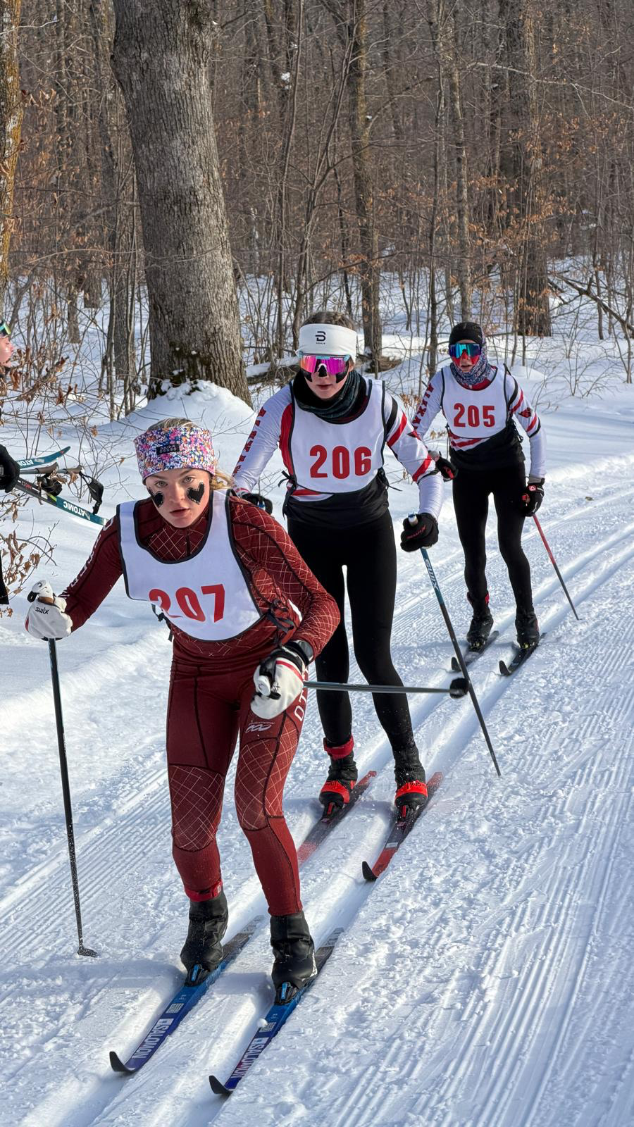 Girls racing action, Section 8 Nordic Ski Chanps, February 3rd, 2026.