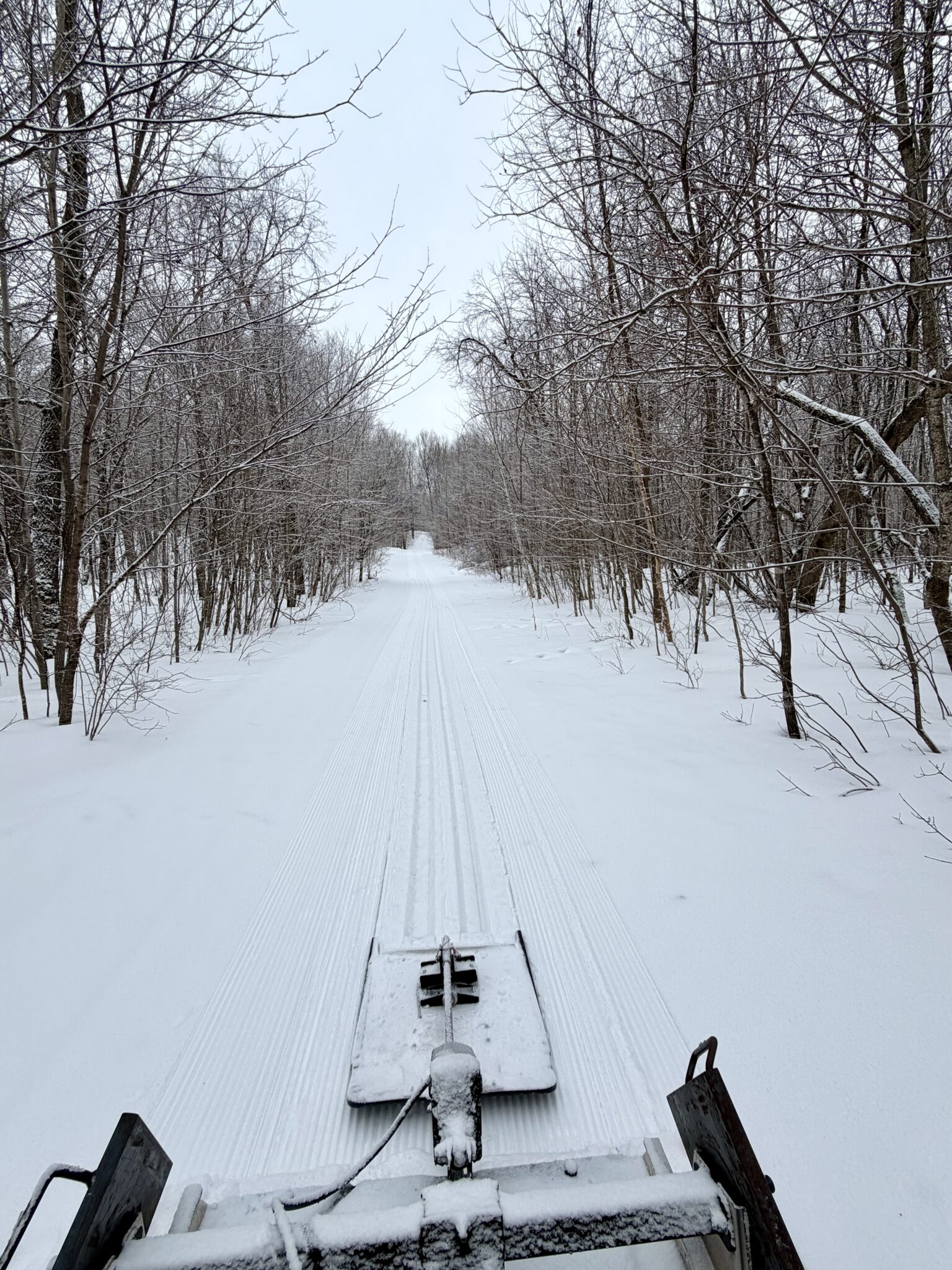 Trails are open After a fun run of spring skiing, winter has returned with cooler temps and 2-3″ of new snow. All double track classic trails groomed Thursday and all skate trails groomed again after being groomed Wednesday afternoon/early evening. Bullhead Bootleg lake loop groomed Thursday afternoon. Remainder of the singletrack classic trails on tap for grooming today to complete a regroom of the entire trail system. Should be a great weekend to ski with ideal temps and the new snow! A lot of sticks and branches coming down with the storm we are clearing the bigger stuff but nothing to prevent a great outing! Just Ski!