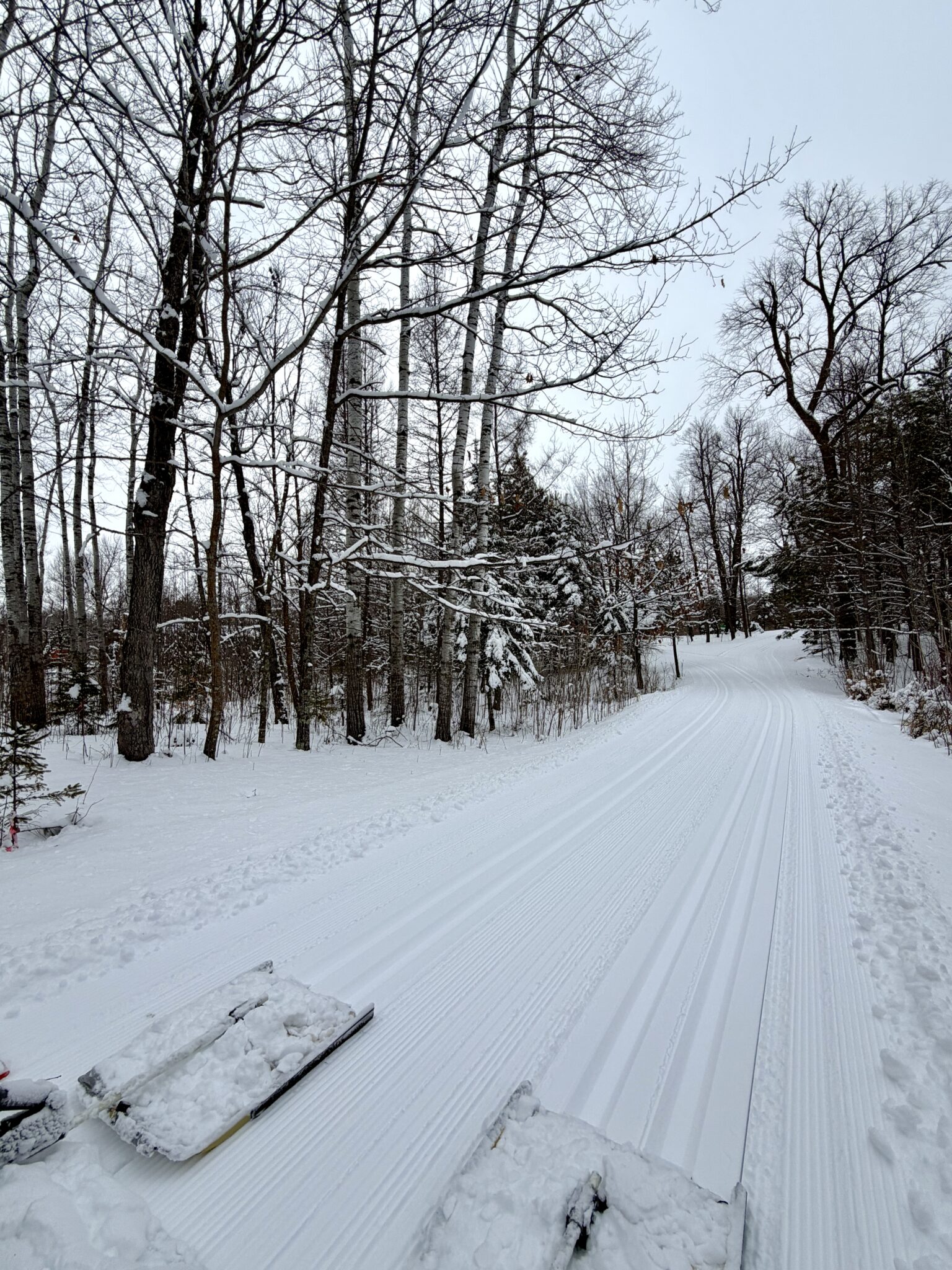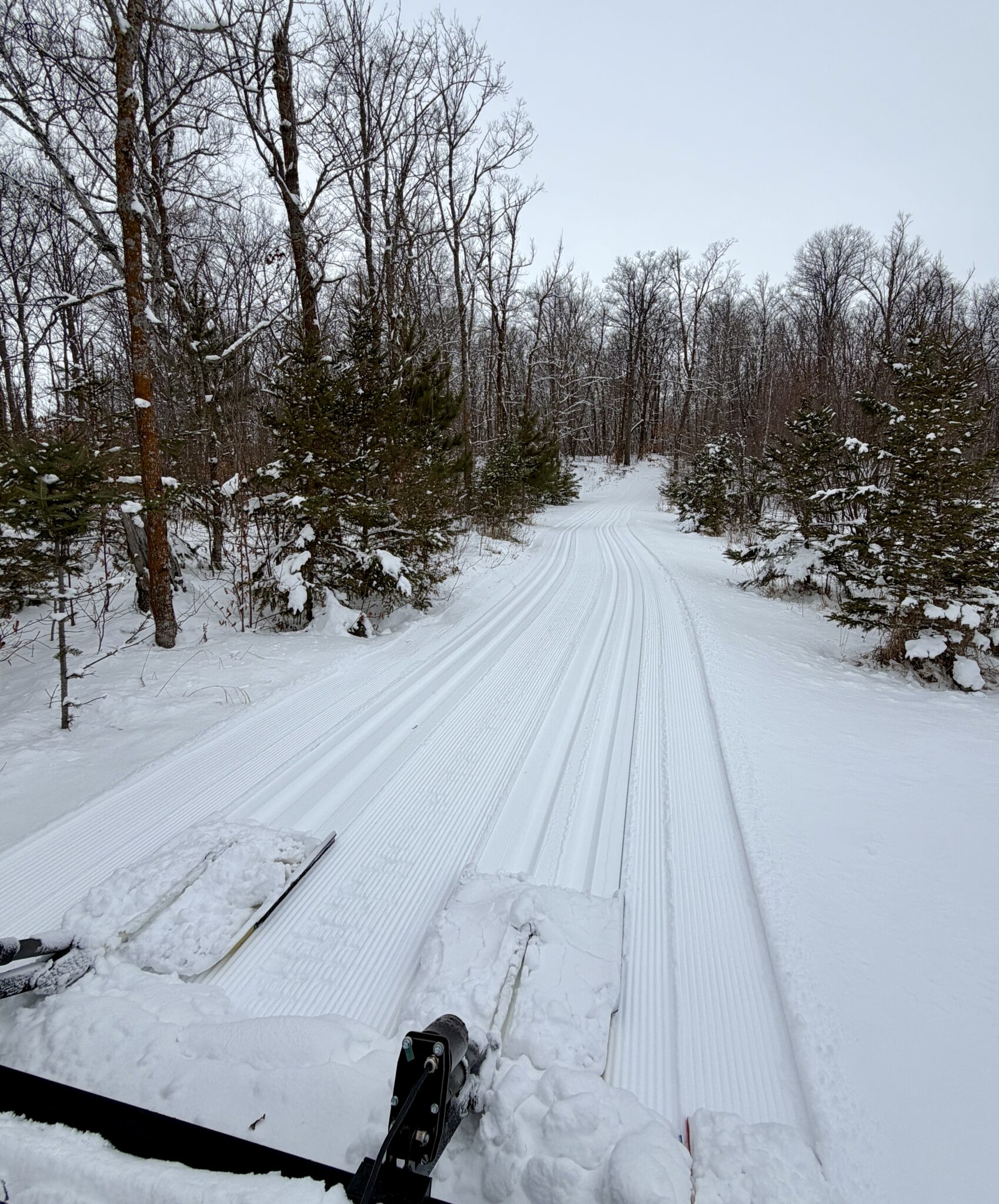 Winter returns! Snow moving in on the weekend with 6-7″ of fresh powder. Another dusting over night as the bulk of the Sunday storm staying south of us. Grooming Saturday on Sap Run, Mother Hen, Sukkerbusk and JibFly setting track. Skate ski grooming on 4km loop of Skaters Waltz. Very tricky grooming on the segments ice base underneath making it difficult for traction and multiple times getting stuck. Grooming planned this morning on the same trails groomed yesterday and also plan to groom Rootin Tootin and Roy’s Run. For the most part the snow is skiing like mid winter and doesn’t get much better for mid March! Just Ski.