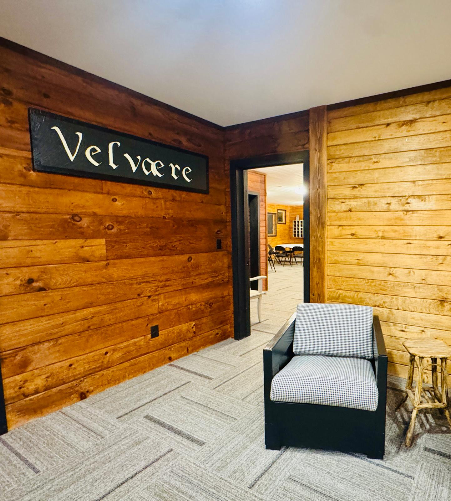 All the lodging rooms have been removed to create large and small meeting space for various groups with a focus on “Velvære” which is Norwegian word focusing on wellness, and using nature to enhance well being.